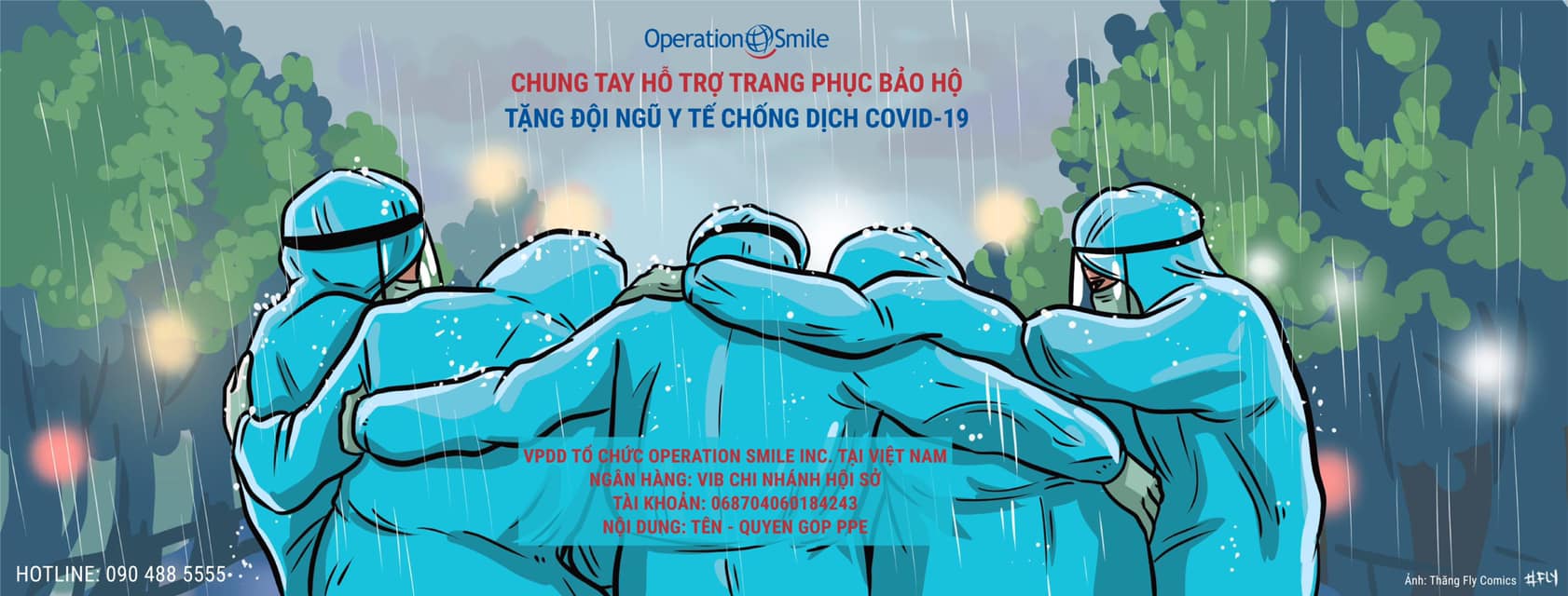 Operation Smile Hoa Kỳ cam kết sẽ hỗ trợ một khoản tương đương để có thể nhân đôi số lượng đồ bảo hộ và khẩu trang N95 giúp làm giảm phần nào nguy cơ lây nhiễm cho lực lượng cán bộ y tế hiện đang làm nhiệm vụ (tối đa khoản hỗ trợ từ Operation Smile là 50,000 đô la Mỹ – 1,3 tỷ đồng).